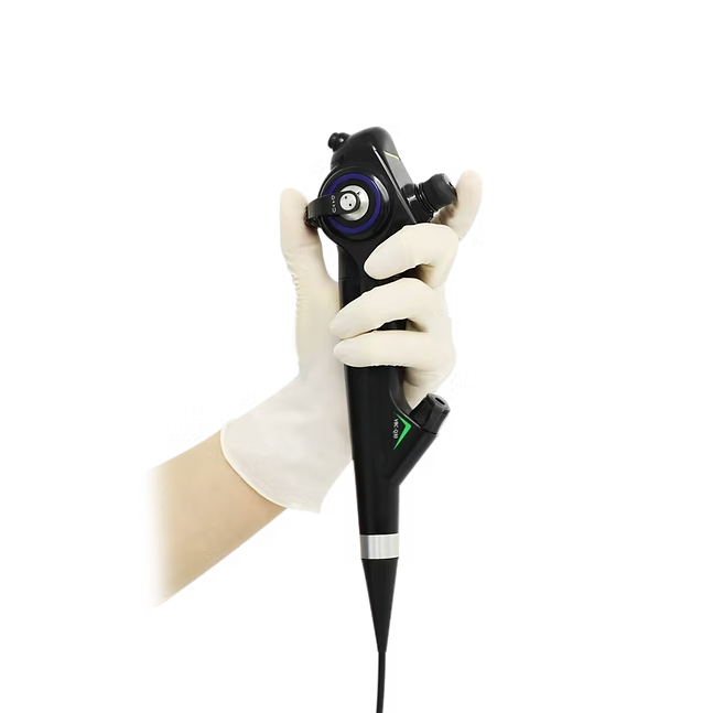 Видеобронхоскоп применяется для наблюдения, диагностики и лечения трахеи и бронхов пациента. Высокое разрешение встроенной CCD-матрицы, позволяет увеличить разрешение изображений и восстановить цвета для увеличения контраста наблюдаемой слизистой поверхности.